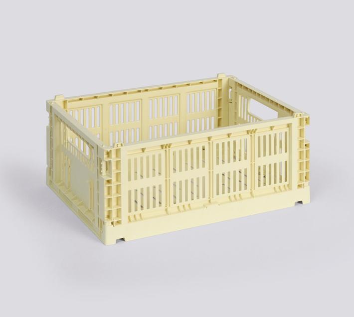 HAY Colour Crate est une série de boîtes de rangement colorées au design perforé distinctif. Fabriquées à partir de déchets de plastique recyclés à 100 % après consommation dans une variété de couleurs et de tailles, les caisses peuvent être empilées les unes sur les autres dans différentes combinaisons de tailles. Les caisses multifonctionnelles sont adaptées au rangement et à l’organisation d’un large éventail d’articles sur des étagères, des tables ou des armoires intérieures.