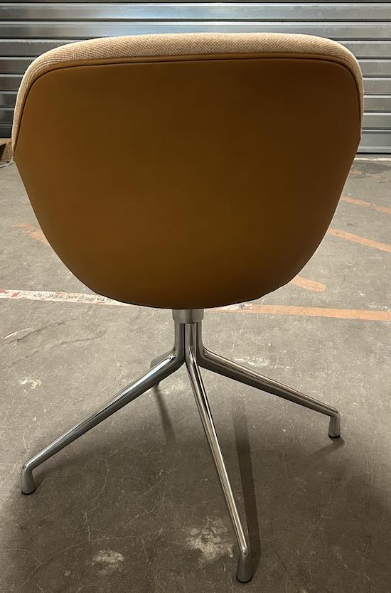 Doté d'une base pivotante en aluminium, l'AAC 121 a une expression légèrement plus formelle que les autres variantes de la série. En conservant le même dossier haut et le siège généreux qui caractérise la série, cette conception présente une base fonctionnelle avec des jambes qui s'évanouissent du centre. La base est disponible en aluminium noir poli ou à revêtement en poudre. La coque est proposée dans une variété d'options de rembourrage, offrant une multitude de combinaisons de design qui confèrent à cette série une polyvalence dans de nombreux contextes d'entreprise, publics et privés.